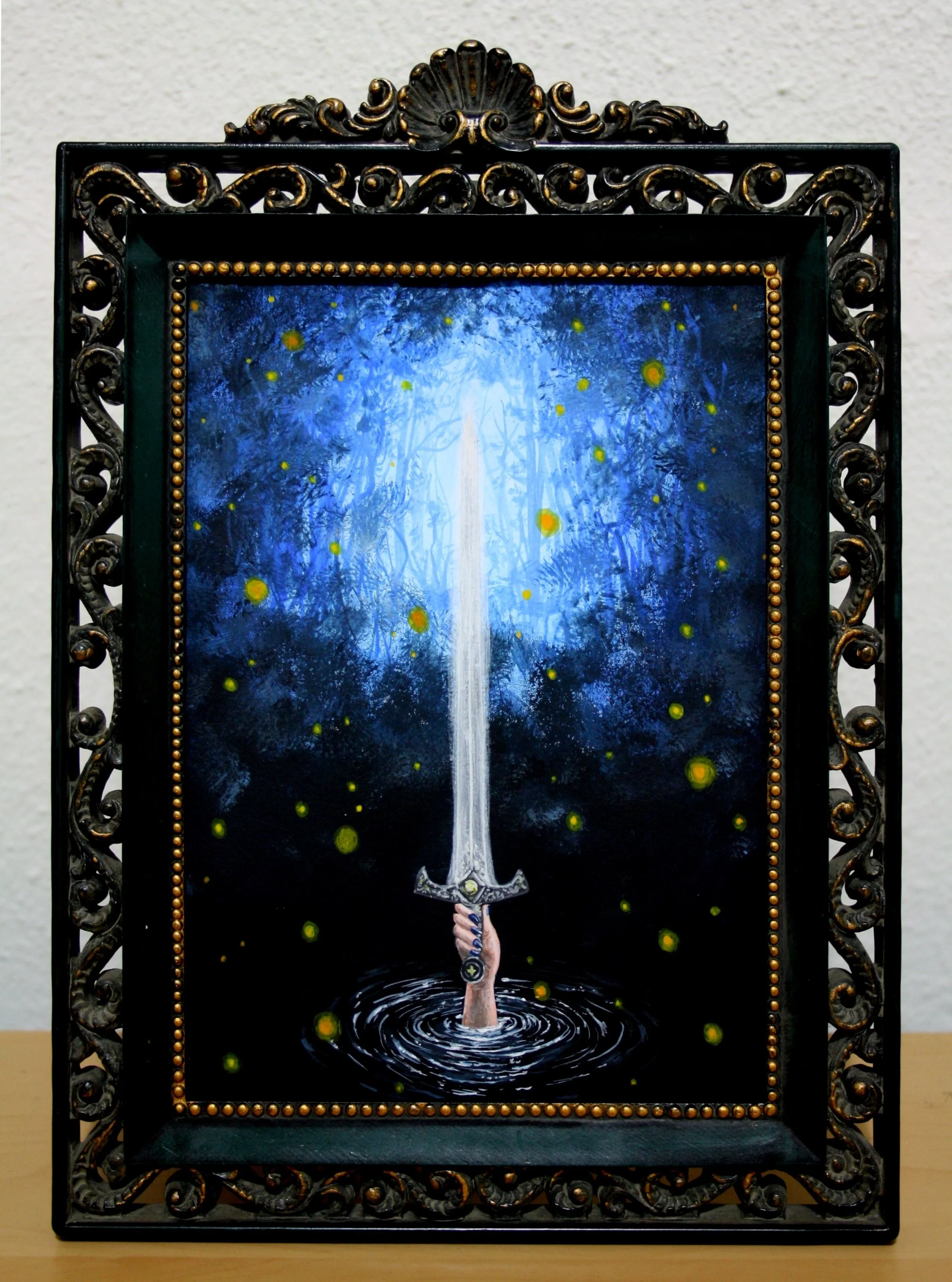 Lady of the Lake (2023) Acrylic on cartridge paper/framed - 24cm x 17cm