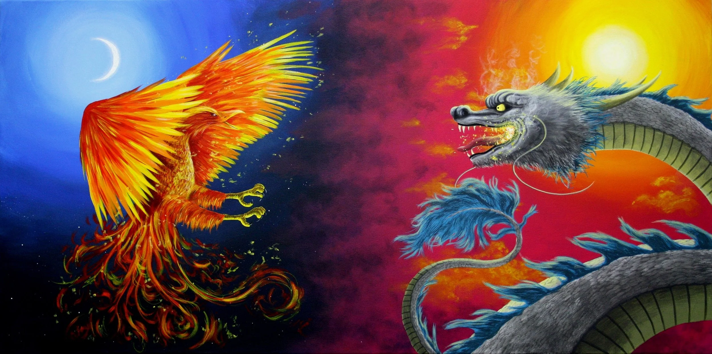 Phoenix and Dragon ( 2023) Acrylic on canvas - 61cm x 122cm